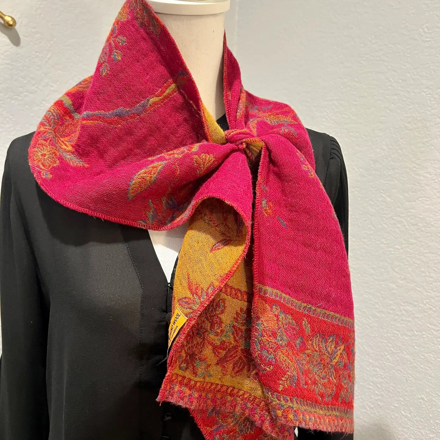 These beautiful boiled wool neck scarves are made of 100% Australian Merino wool. They are super soft, easy to wear, lightweight and warm. Gorgeous shades of fuchsia and gold make this scarf a versatile piece in any wardrobe. Every scarf comes with style tags giving you step by step instructions on how to wear the scarf in 4 different ways.