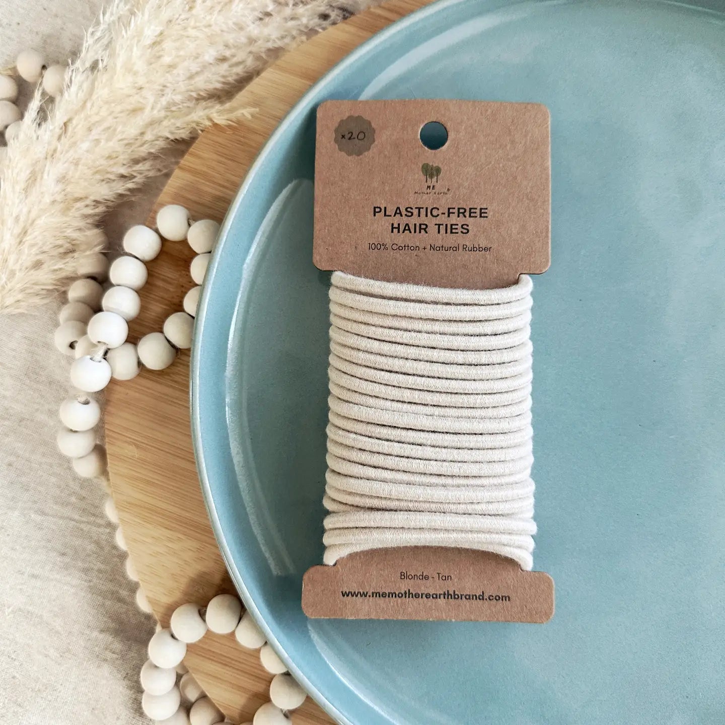 Made from 100% cotton and natural rubber, these plastic-free hair ties are biodegradable.